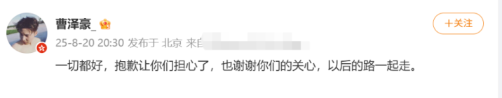 8月20日,演员李明德的经纪人曹泽豪发文称:“一切都好,抱歉让你们担心了,也谢谢你们的关心,以后的路一起走。”