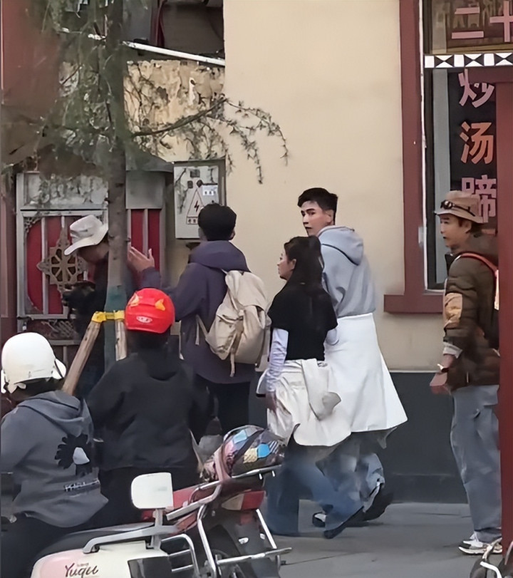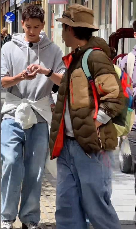 从网友分享的画面看,他们参加的似乎并不是夫妻档综艺,这位身穿紫色冲锋衣的是男星张铎,前面戴帽子穿羽绒服的则是李茂。