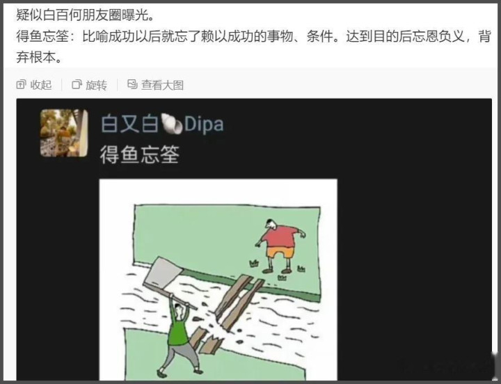 白百何此前在微博发文“还能这么操作…”,并配上“捂眼、捂耳朵、捂嘴”的表情包,还疑似在朋友圈配图“过河拆桥”,这接连内涵的操作冲上热搜。