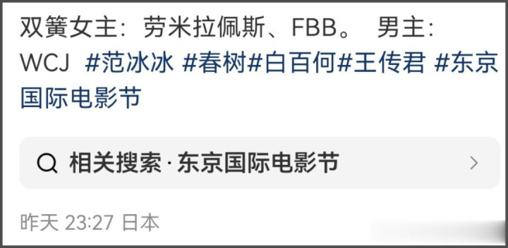 而更尴尬的是,这次东京电影节影后疑似是“双黄蛋”,有日本ip网友爆料东京电影节最佳女主是劳米·拉佩斯和范某某。