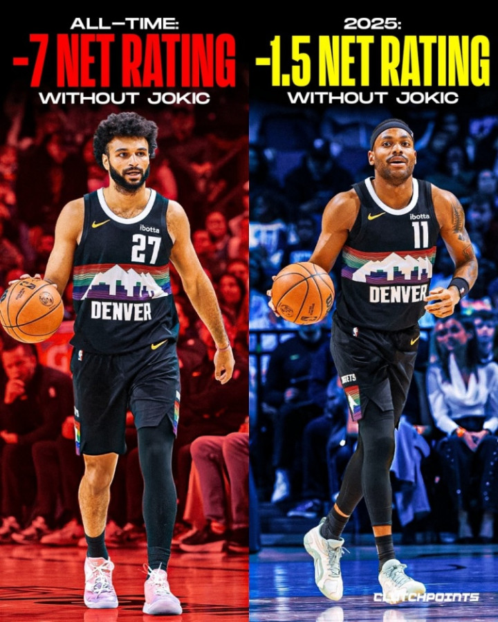 目前,当约基奇不在场上时,丹佛掘金队的净效率值为-1.5!