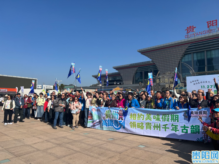 11月27日,500余名香港同胞搭乘高铁专列从香港西九龙出发,历经5个小时车程直达贵阳北站,开启“美味假期”主题行。