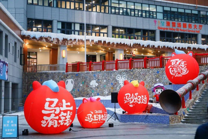 雪山绵延如幕,彩旗迎风摇曳。12月8日,羌人谷滑雪场里处处洋溢着喜庆的氛围。